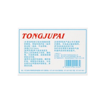 創(chuàng)口貼由接觸創(chuàng)面的敷墊、背貼和保護(hù)層(臨用前去除)組成,不含藥物。